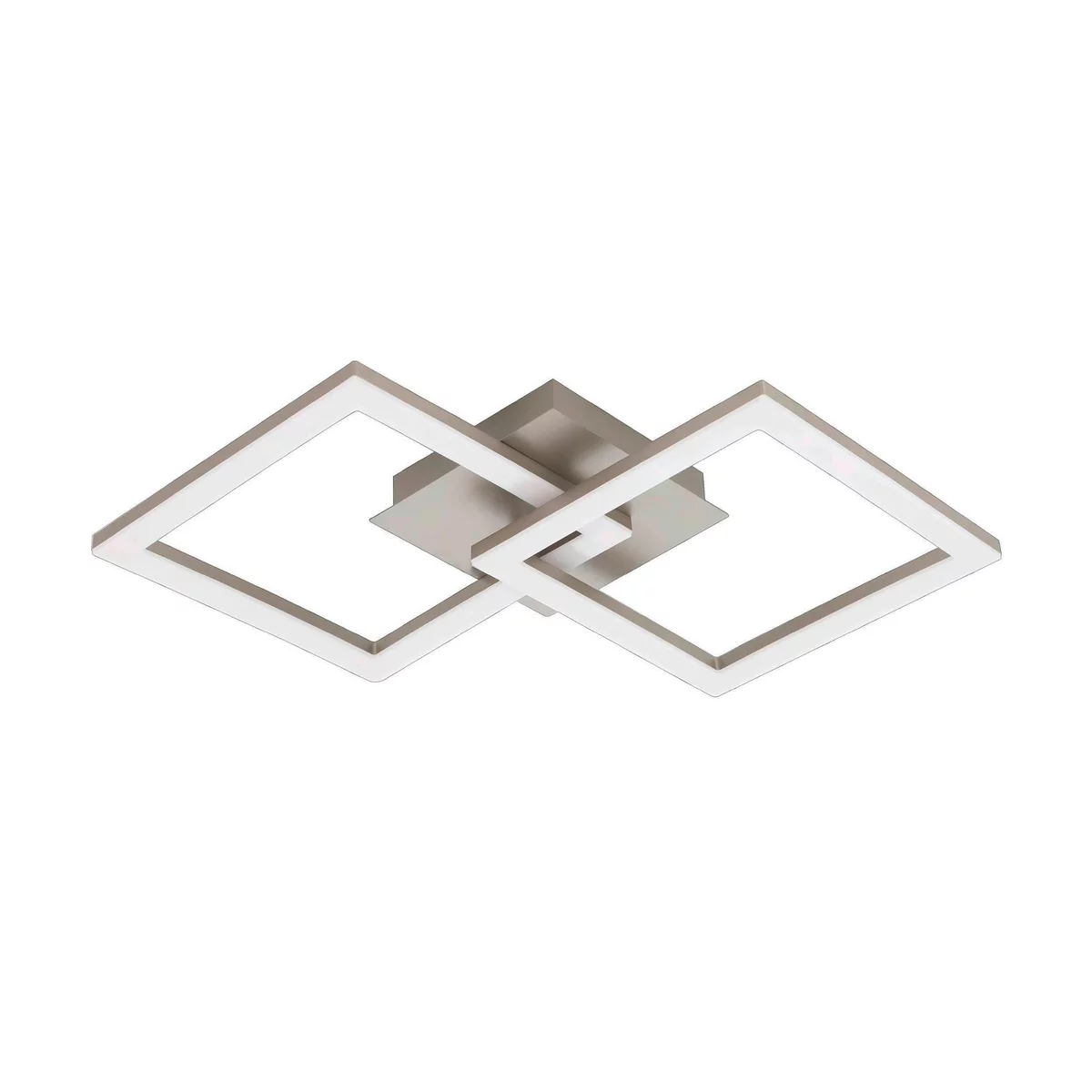 Mit ihrem außergewöhnlichen Design aus drei Quadraten ist die Deckenleuchte HUERTA 75736 ein echtes Highlight in jedem Wohnzimmer oder Schlafzimmer. In freundlichem Weiß in Kombination mit vernickeltem Stahl macht sie mit ihrem angenehm warmweißen Licht überall Eindruck.